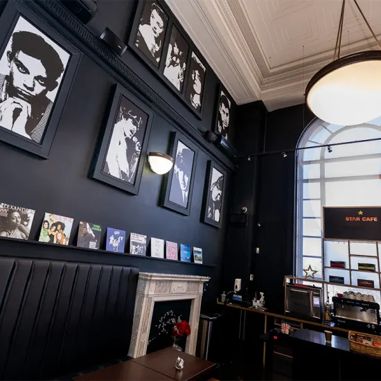 The Star Café & Bar is a licensed cafe located within the iconic Cunard Building, one of Liverpool’s “Three Graces.” Open to the general public without a museum ticket, it is situated in the historic manager’s office of the Cunard Line’s first-class passenger lounge.